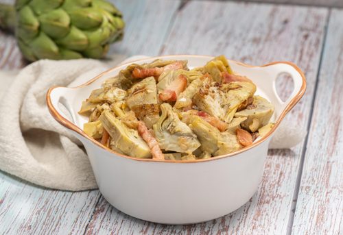 SALSEADO DE ALCACHOFAS CON BACON