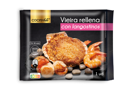 Vieira rellena con Langostinos